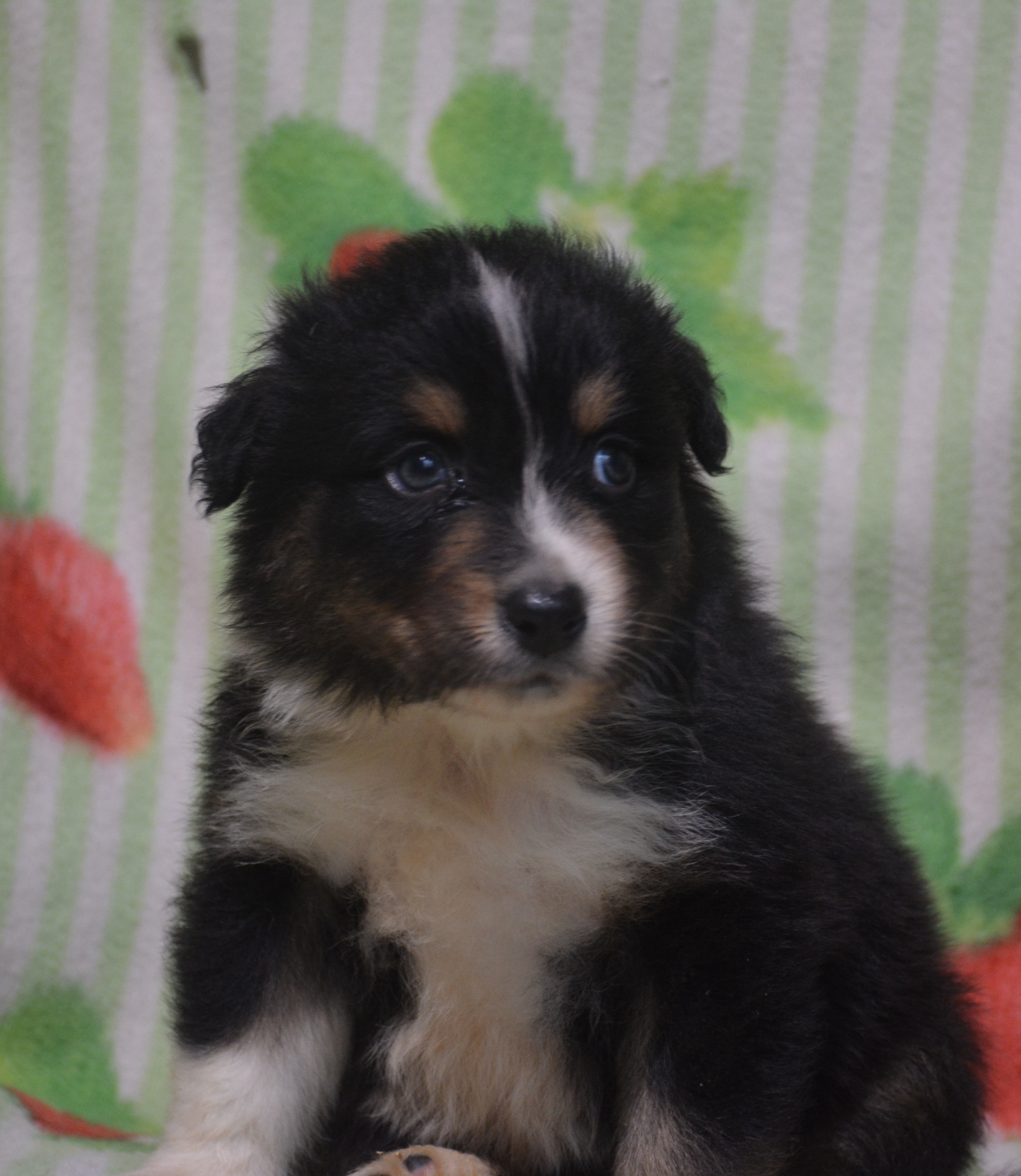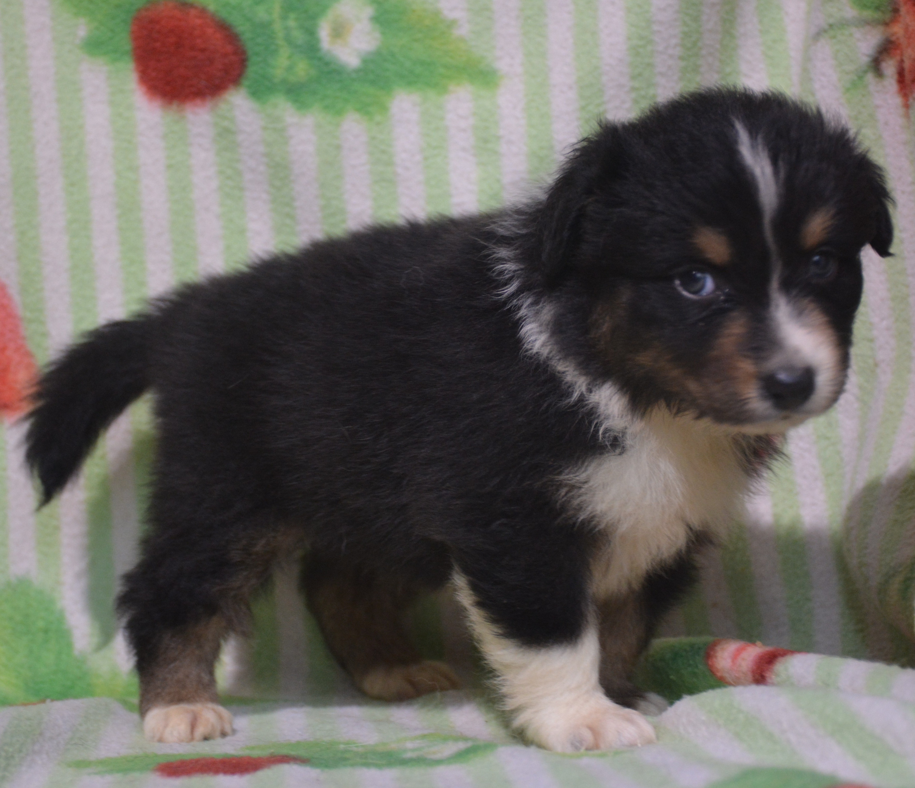 Mâle noir tricolore, yeux marrons, queue longue, Tous nos chiots sont élévés en famille.NOUS VOUS PROPOSONS UN SUIVI DE VOTRE LOULOU