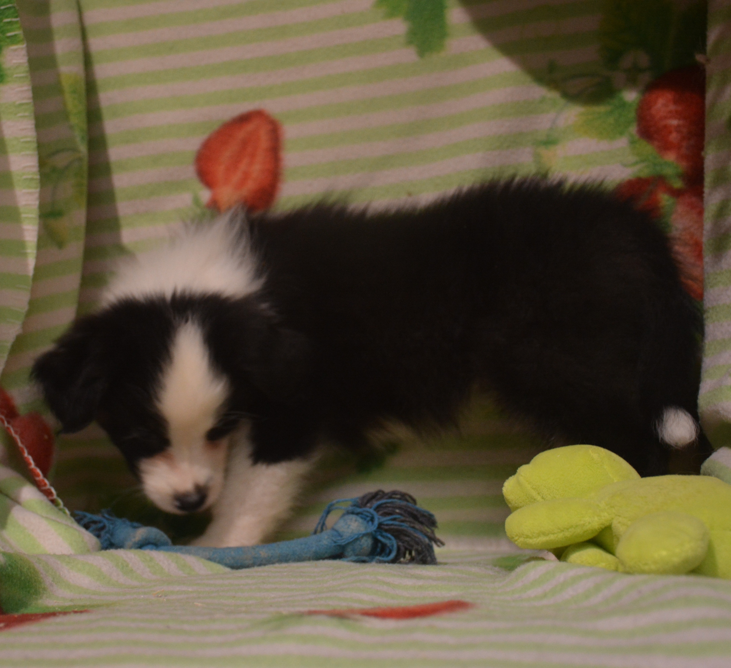Mâle noir tricolore, yeux vairons , très joli marquage, collier blanc complet, queue longue, excellente origine tests ADN et TESTS génétiques liés à la race Tous nos chiots sont éléves en Famille Nous vous offrons deux mois de mutuelle au départ de votre chiots , un suivi et des conseils. Pour plus d'informations n'hésitez pas à nous contacter.