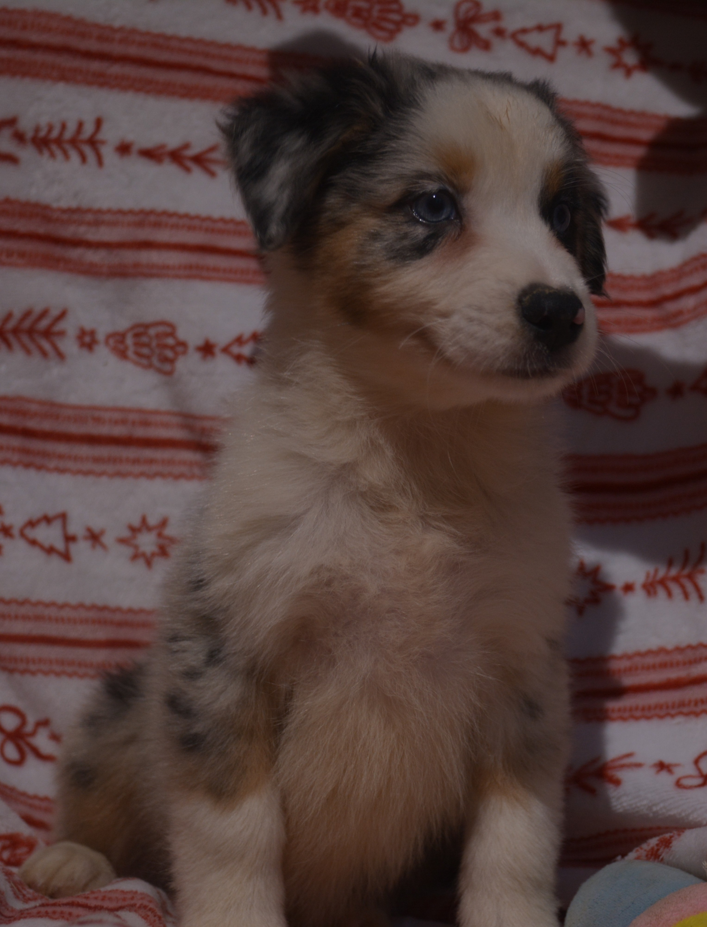 Mâle bleu merle, yeux bleus, trés jolie marquage, collier blanc complet, queue longue ,